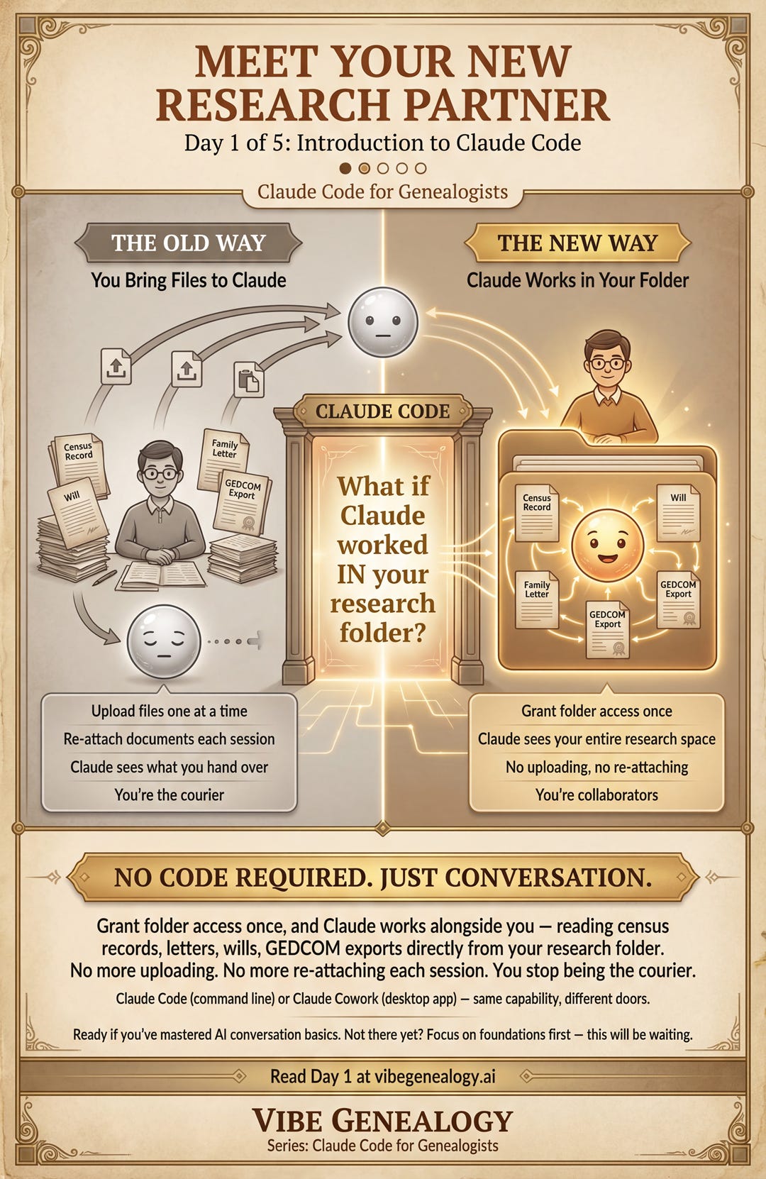This is Day 1 of a 5-day series introducing Claude Code to genealogists. The full series is available at Vibe Genealogy.