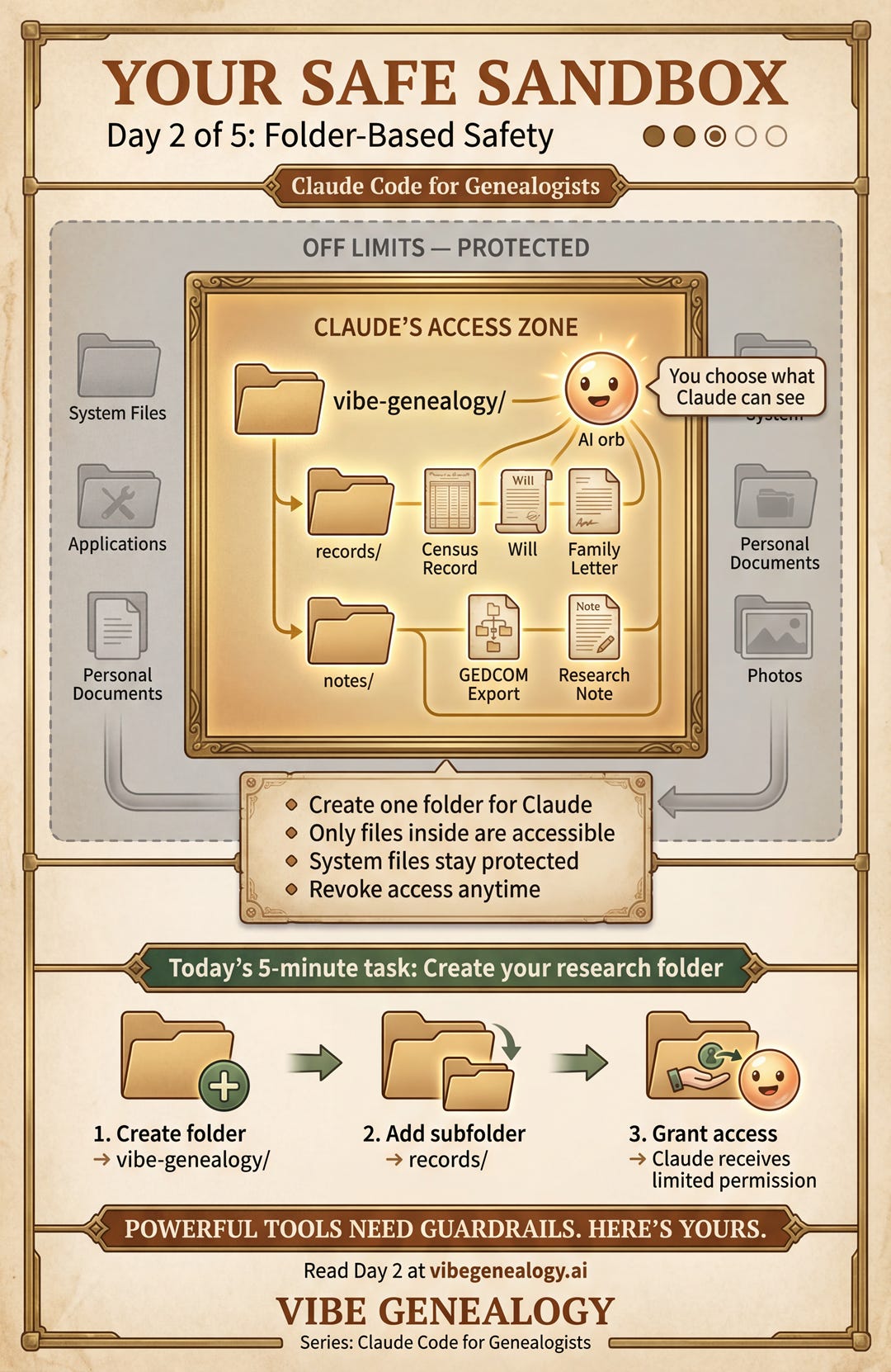 This is Day 2 of a 5-day series introducing Claude Code to genealogists. Day 1: Meet Your New Research Partner. The full series is available at Vibe Genealogy.