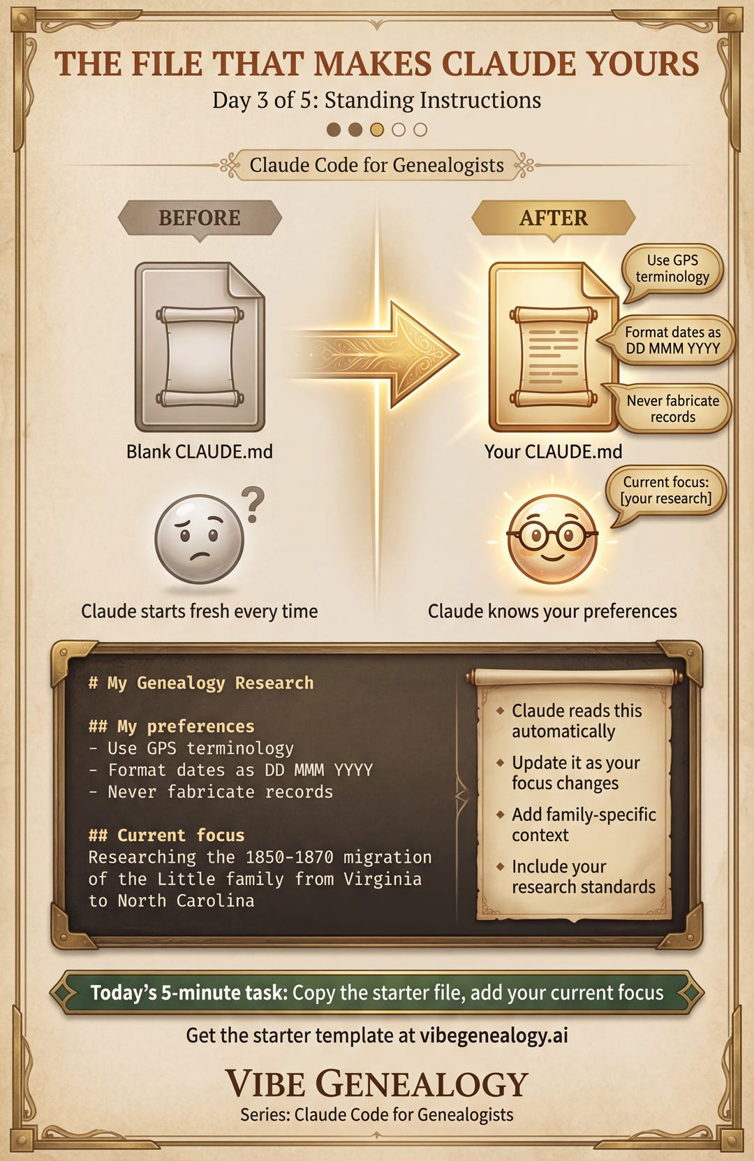 This is Day 3 of a 5-day series introducing Claude Code to genealogists. Day 1 | Day 2. The full series is available at Vibe Genealogy.
