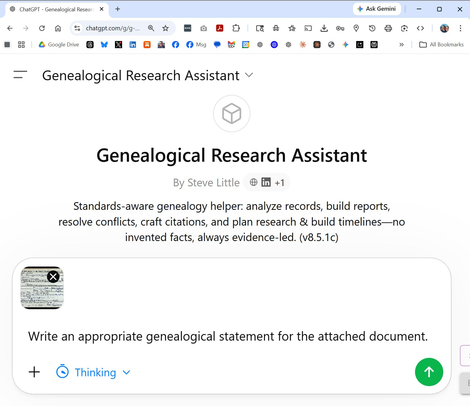 Custom GPT (ChatGPT): https://chatgpt.com/g/g-69701d25d61c819192c2db4589b366d9-genealogical-research-assistant